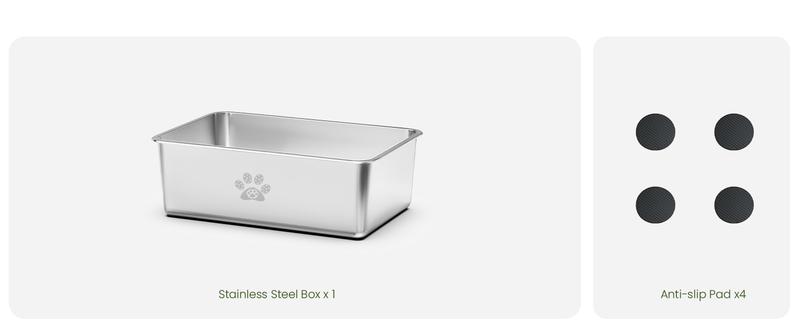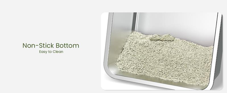 There are four silicone anti-slip pads on the bottom of the cat litter box to prevent the litter box from moving and scratching, and protect the floor. Stainless steel litter boxes do not collect any residue or odors, so if you don’t like the smell of plastic litter boxes, this litter box is a great choice for you!
